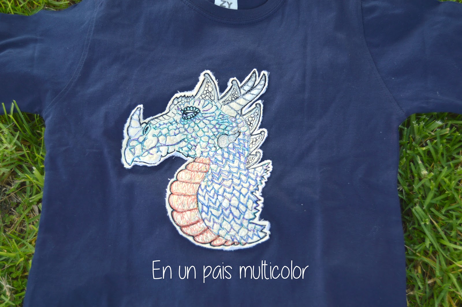 Por eso, por sus cualidades como guardián, poseedor de sabiduría y conocimiento, y ligado mágicamente solo con “unos pocos”, este dragón benévolo y sabio lejos de asustar cuidará al poseedor de esta camiseta… ¿te he dicho ya que mi caballero de dragón “flipó” cuando vió la camiseta? pues eso… que a pesar del esfuerzo para hacerla, solo con verle cómo se le iluminaron los ojos ya me dio ideas para hacerle otra!!! Feliz comienzo del finde…