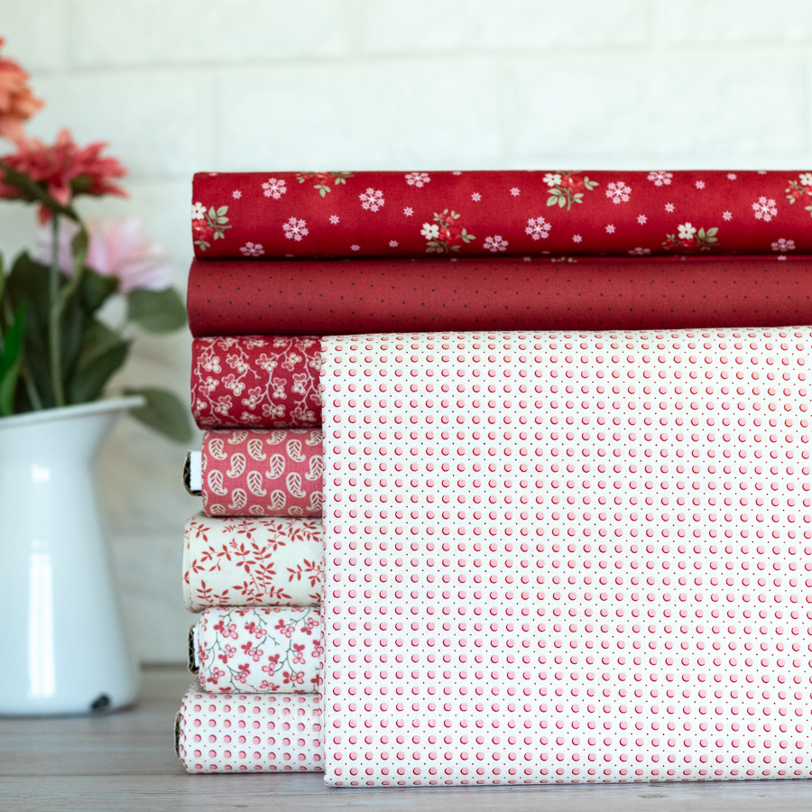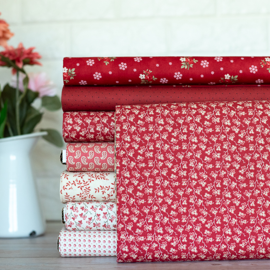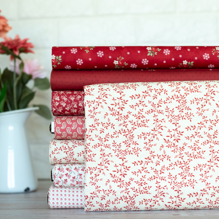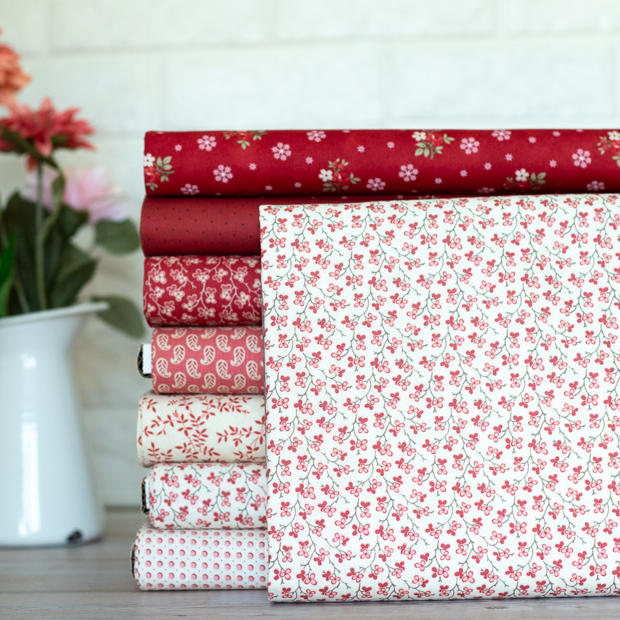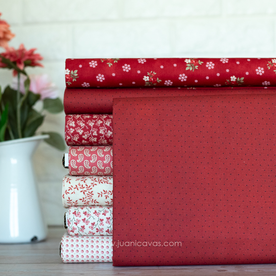 Perfecta para quienes quieren darle un toque cálido, clásico pero con mucha personalidad a sus proyectos de patchwork, quilting o costura creativa. Los tonos van desde el burdeos intenso hasta el blanco roto con motivos rojos, pasando por patrones tan cucos que tu abuela querrá uno y tu vecina también.
