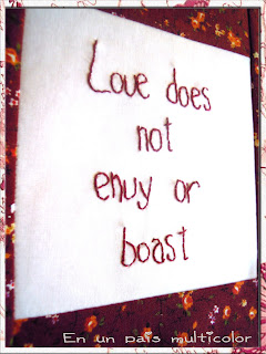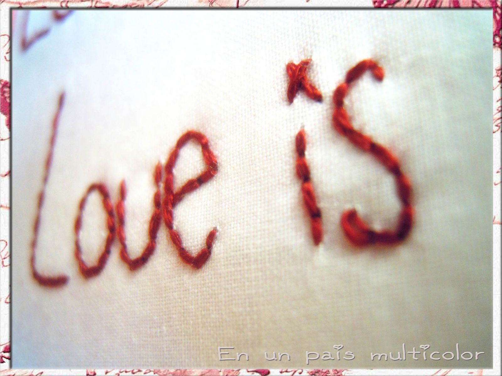 Os enseño los dos últimos bloques del SAL Love is… la verdad es que se está quedando muy lucido creo yo… 🙂 yo no había bordado nunca y oye, que le estoy cogiendo el gustillo 🙂 ahora solo falta no destrozarme los brazos al calcar el diseño, a ver si consigo que “mi compañero de piso” me haga una caja de luz tan chula como la que se ha fabricado Dori aquí …