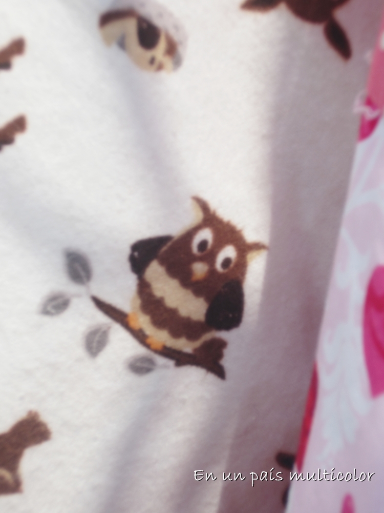Por detrás lleva una franelita con buhos, cervatillos y ardillas :)))) la mar de cálida y suaaaaaave como el culito de este bebé :))))))