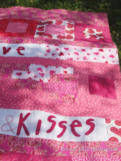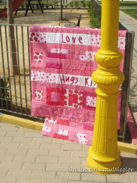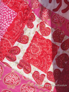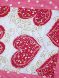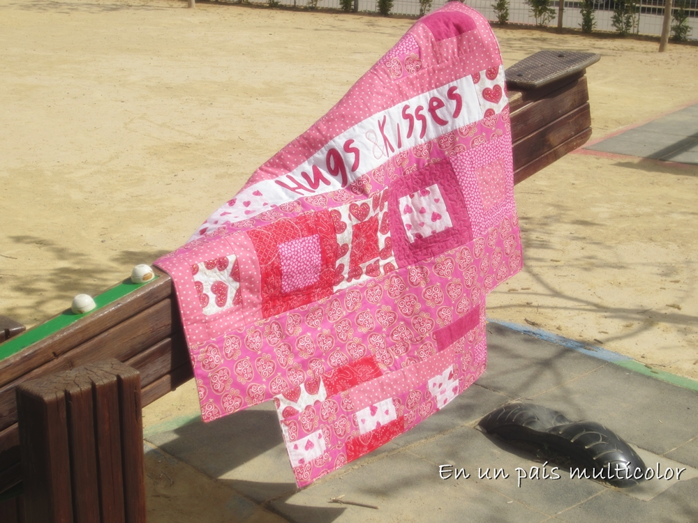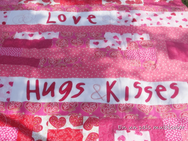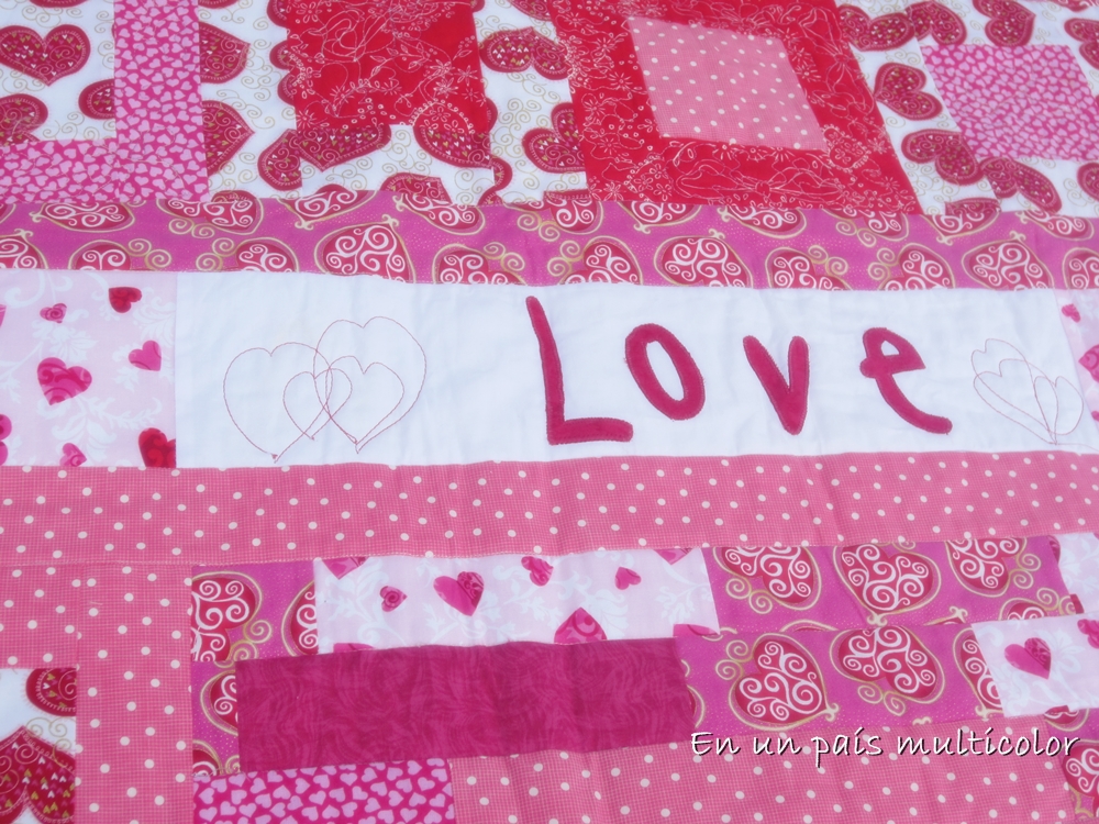 Está acolchado por las costuras, y en el centro de los bloques un acolchado libre con corazones, el amor que no falte 😉
