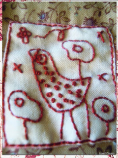 Estos días andaba buscando algo pequeño que bordar antes de empezar el SAL de Redwork (uno de los dos en que ando metida :)) y vi este lindo pajarito. Mmmm algo pequeño para ir